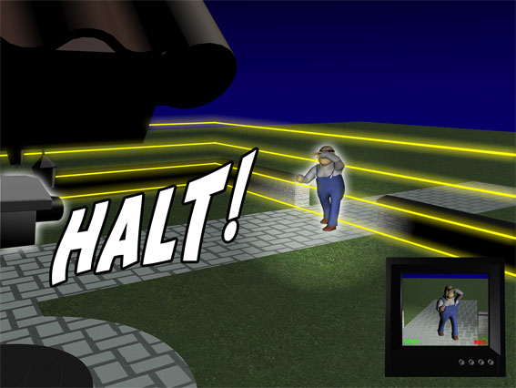 Betritt nun eine Person Ihr Grundstück, wird sie sofort von den unsichtbaren Strahlen des Infrarot-Zauns erfasst.